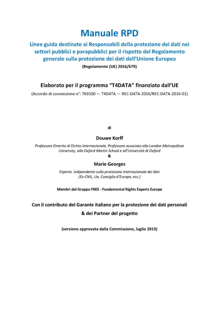 MANUALE PER I RESPONSABILI DELLA PROTEZIONE DEI DATI (RPD)